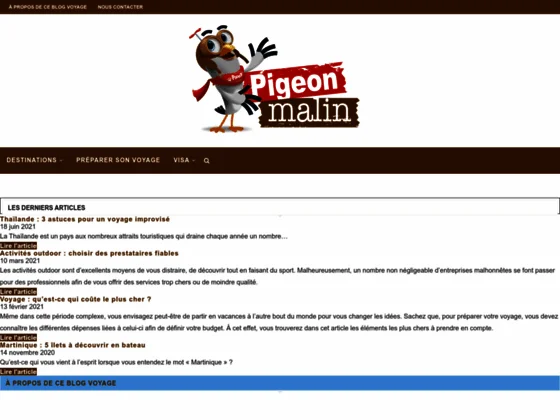 Vous souhaitez partir en voyage l’esprit tranquille ? Dans ce cas, venez faire un tour sur le blog voyage PigeonMalin. Vous y découvrirez énormément de bons plans ainsi que des articles complets pour préparer votre futur voyage dans les meilleures conditions et des suggestions de destination avec les attractions principales à faire.