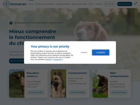 À Orgères, Animalien est dirigé par Michael Mayeux, éducateur canin et comportementaliste passionné, fort de 8 années d’expérience dans l’accompagnement des chiens et de leurs propriétaires. Spécialisé dans l’analyse et la résolution des troubles du comportement, il intervient directement à domicile afin d’observer votre animal dans son environnement quotidien, garantissant ainsi un diagnostic précis et des conseils réellement adaptés à votre situation. Grâce à une approche basée sur la bienveillance, le respect de l’animal et la compréhension mutuelle, Animalien privilégie des méthodes douces, sans contrainte ni violence. L’objectif est de renforcer la relation de confiance entre vous et votre compagnon à quatre pattes, tout en favorisant un équilibre durable au sein de votre foyer. Que votre chien présente des problèmes d’obéissance, d’anxiété, d’agressivité ou encore de destruction, chaque accompagnement est entièrement personnalisé. Le bilan comportemental proposé permet d’identifier les causes des comportements gênants et de mettre en place un plan d’action clair, progressif et efficace. Vous bénéficiez également de conseils pratiques pour mieux comprendre les besoins de votre chien et adopter les bons réflexes au quotidien. Disponible, à l’écoute et investi, Michael Mayeux vous accompagne pas à pas dans l’éducation ou la rééducation de votre animal. De plus, les déplacements sont offerts, ce qui facilite l’accès à un service professionnel de qualité. N’hésitez pas à contacter Animalien pour un suivi sur mesure et des résultats concrets, dans le respect du bien-être animal.