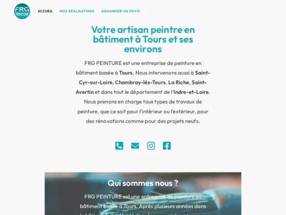 Installée à Tours, FRG Peinture est une entreprise artisanale spécialisée dans tous les travaux de peinture pour les particuliers et les professionnels. Que vous souhaitiez rafraîchir un intérieur, refaire complètement une pièce, repeindre une façade ou entreprendre une rénovation plus importante, notre équipe s’occupe de tout avec soin et professionnalisme. Nous intervenons sur Saint-Cyr-sur-Loire, Chambray-lès-Tours, La Riche, Saint-Avertin et dans l’ensemble du département de l’Indre-et-Loire, toujours dans le respect des délais et des exigences de nos clients. Chez FRG Peinture, chaque chantier est unique et nous prenons le temps de comprendre vos besoins, vos goûts et vos contraintes. Nous vous accompagnons dans le choix des couleurs, des finitions et des matériaux les plus adaptés à votre projet, pour que le résultat corresponde exactement à vos attentes. Nous veillons également à ce que chaque intervention se déroule dans les meilleures conditions, en laissant les lieux propres et en minimisant les désagréments pour vous. Notre équipe met un point d’honneur à allier savoir-faire traditionnel et techniques modernes afin de garantir des travaux durables et esthétiques. Nous travaillons avec des peintures et matériaux de qualité, adaptés à chaque type de surface et de chantier. Que ce soit pour des appartements, des maisons, des bureaux ou des commerces, nous adaptons notre approche pour offrir un résultat impeccable et sur mesure. En choisissant FRG Peinture, vous faites le choix d’une entreprise à l’écoute, réactive et proche de ses clients. Nous aimons partager notre expérience et nos conseils, tout en respectant votre vision et vos priorités. Notre objectif est simple : transformer vos espaces en lieux agréables et durables, tout en vous garantissant un service fiable, soigné et professionnel du début à la fin