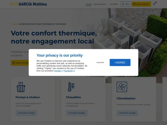 À Lagrace-Dieu, Garcia Mathieu est votre expert de confiance dans l’installation de systèmes de climatisation, offrant des solutions sur mesure pour tous types de logements et de locaux professionnels. Notre entreprise familiale met un point d’honneur à fournir un service complet, allant de la conception et l’installation à l’entretien régulier, afin de garantir un air frais, pur et agréable tout au long de l’année. Conscients que chaque espace a ses spécificités, nous proposons des climatisations adaptées aux besoins précis de nos clients, en privilégiant des équipements modernes, performants et écoénergétiques. Que vous souhaitiez rafraîchir une pièce unique, équiper un appartement entier ou installer un système centralisé dans un bâtiment professionnel, nous sommes en mesure de vous accompagner avec des conseils personnalisés et une expertise reconnue. En choisissant Garcia Mathieu, vous bénéficiez non seulement d’une installation rapide et soignée, mais aussi d’un suivi professionnel qui inclut la maintenance préventive, le nettoyage des unités et la vérification régulière des performances. Notre objectif est de vous offrir un confort optimal, tout en préservant la durée de vie de votre équipement et en réduisant la consommation énergétique. Parce que la qualité de l’air intérieur est essentielle pour votre bien-être et celui de votre famille, nous veillons à ce que chaque installation soit réalisée dans le respect des normes de sécurité et des meilleures pratiques du secteur. Faites confiance à notre savoir-faire pour profiter d’un environnement intérieur frais, sain et confortable, été comme hiver. Avec Garcia Mathieu, la climatisation devient simple, efficace et durable, au service de votre confort quotidien.