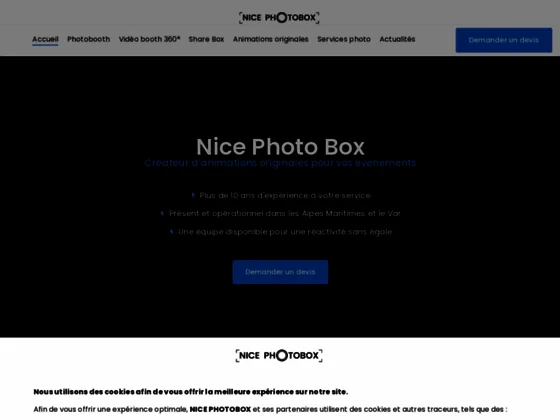 Pour tous vos évènements et vos soirées à Nice, Cannes et Monaco, Nice Photo Box vous créé un atelier photo amusant et très tendance. Faites le choix entre notre appareil photo booth et notre hashtag Box. Avec notre Photo booth nous vous fournissons des déguisements pour des photos frôle et décalées ainsi qu'une décoration faite sur-mesure pour vous. Avec notre hashtag box, nous choisissons avec vous un hashtag pour votre soirée pour imprimer toutes les photos personnalisées prises durant l'évènement. Nos animations peuvent également devenir un véritable support de communication et vous permettre de faire le buzz tout en faisant le plein de souvenirs.
