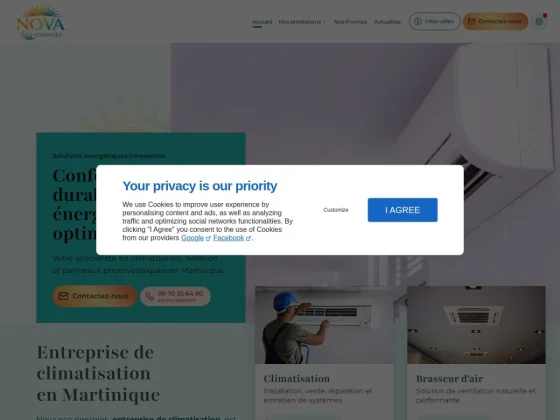Implantée en Martinique, l’enseigne Nova eco énergies se positionne comme une entreprise de climatisation reconnue pour la qualité de ses prestations et son engagement en faveur de la performance énergétique. Elle accompagne aussi bien les particuliers que les professionnels dans la mise en place de solutions fiables et durables, adaptées aux contraintes climatiques locales. Spécialisée dans la climatisation, cette entreprise de climatisation propose des services complets incluant l’installation, la maintenance, la réparation et le remplacement d’équipements thermiques. Grâce à une expertise technique solide, Nova eco énergies assure un confort optimal en toutes saisons, tout en veillant à limiter la consommation énergétique. Au-delà de son activité principale, la société développe également des solutions complémentaires en ventilation, isolation thermique, chauffe-eau solaire et panneaux photovoltaïques. Cette approche globale permet d’optimiser les performances énergétiques des habitations et des locaux professionnels en Martinique. L’entreprise se distingue par une sélection rigoureuse de matériels performants et durables, ainsi qu’un accompagnement personnalisé à chaque étape du projet. Son savoir-faire repose sur plusieurs années d’expérience, garantissant des installations soignées et conformes aux normes en vigueur. Soucieuse de la satisfaction client, Nova eco énergies met un point d’honneur à proposer des conseils clairs, des devis transparents et des interventions rapides. Cette entreprise de climatisation en Martinique s’inscrit pleinement dans une démarche écoresponsable, en favorisant des solutions respectueuses de l’environnement et économiquement avantageuses sur le long terme.