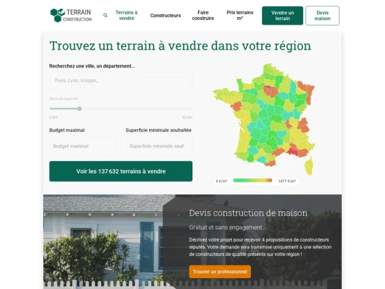 Terrain-Construction.com est une plateforme dédiée à la recherche de terrains constructibles et à l’accompagnement des projets de construction de maison. Elle s’adresse aux particuliers souhaitant trouver un terrain à bâtir ainsi qu’aux porteurs de projets immobiliers désireux de mieux comprendre les différentes étapes liées à la construction. Le choix du terrain constitue une phase essentielle dans tout projet de construction. La plateforme permet de consulter des annonces de terrains à vendre et d’identifier des opportunités adaptées à différents critères tels que la localisation, la surface, le budget ou les caractéristiques du terrain. Les terrains proposés peuvent être situés en lotissement ou en diffus, viabilisés ou non, et correspondent à une grande diversité de projets. Au-delà des annonces, le site propose également des contenus informatifs destinés à accompagner les utilisateurs dans leur réflexion. Il permet notamment de mieux appréhender les notions liées à l’urbanisme, au plan local d’urbanisme, aux contraintes techniques du terrain ou encore aux démarches administratives nécessaires à la réalisation d’un projet immobilier. Les visiteurs peuvent ainsi se familiariser avec les étapes clés d’un projet de construction, depuis la recherche du terrain jusqu’au dépôt du permis de construire. Cette approche permet d’anticiper les contraintes et de sécuriser les décisions à chaque étape du projet. La plateforme met également en relation les particuliers avec des professionnels du secteur immobilier et de la construction, tels que les constructeurs de maisons individuelles, les aménageurs fonciers ou les promoteurs. Cette mise en relation facilite la concrétisation des projets en permettant d’identifier des interlocuteurs adaptés. Grâce à une organisation claire et à des contenus régulièrement actualisés, Terrain-Construction.com constitue un outil utile pour comparer des terrains, affiner sa recherche et avancer de manière progressive dans un projet de construction de maison. Cette approche globale permet d’apporter une vision structurée du parcours immobilier, en combinant recherche de terrain, compréhension des démarches et accès à des informations essentielles pour mener à bien un projet.
