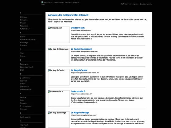 Quoi qu'on en dise, les très bons liens sont toujours les bienvenus pour donner de la force à un site. Weboliste, sous une forme des plus simple, puisqu'il s'agit de liste fait partie de ce genre d'annuaire ou il est de bon ton de soummettre son site.